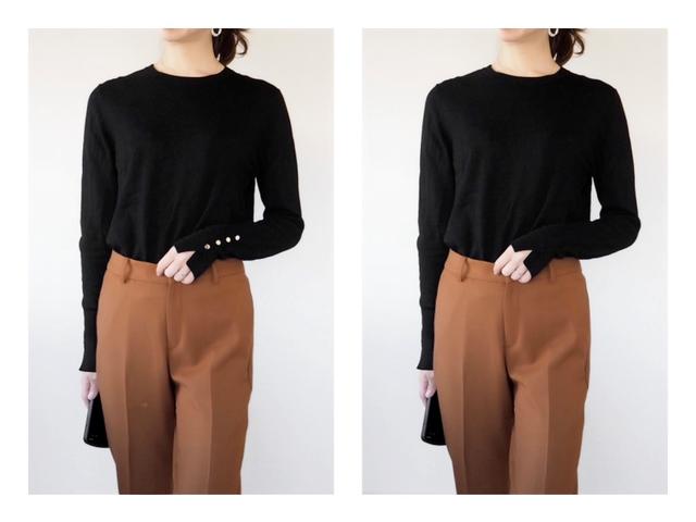 袖にデザインがあるかないかでどれくらい見え方が違うのか比べてみました。