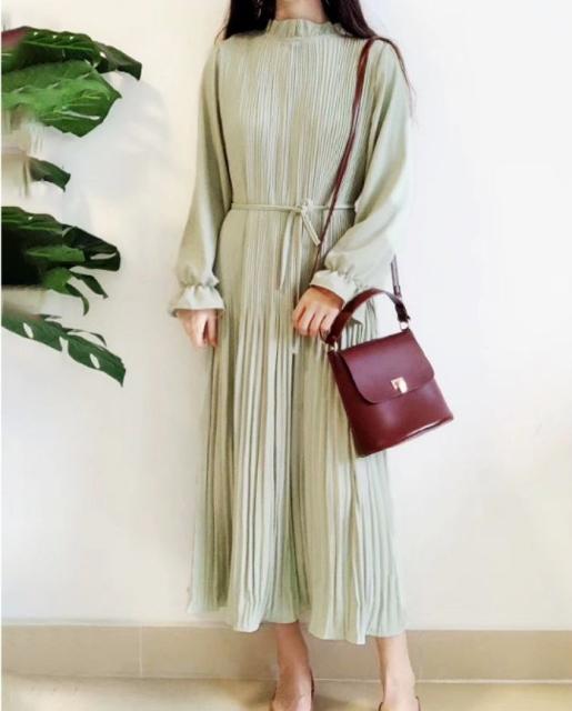 話題のミントグリーンで最旬スタイルが叶うプリーツワンピース。ふんわりとやわらかいジョーゼット素材で、上品な雰囲気がたまりません…♡