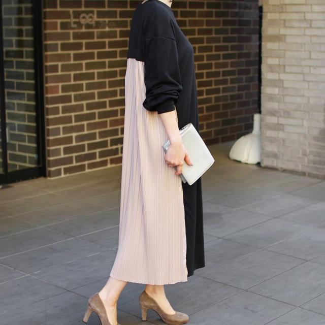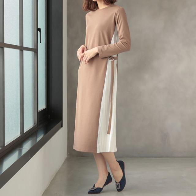 切り替えデザインで上品さ◎サイドプリーツワンピース