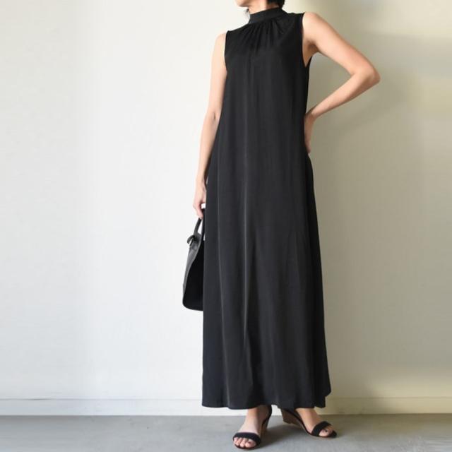 大人ムード漂うシンプルなロングワンピース。スタンドカラーでよりすっきり、スタイルのよいシルエットにまとまります。