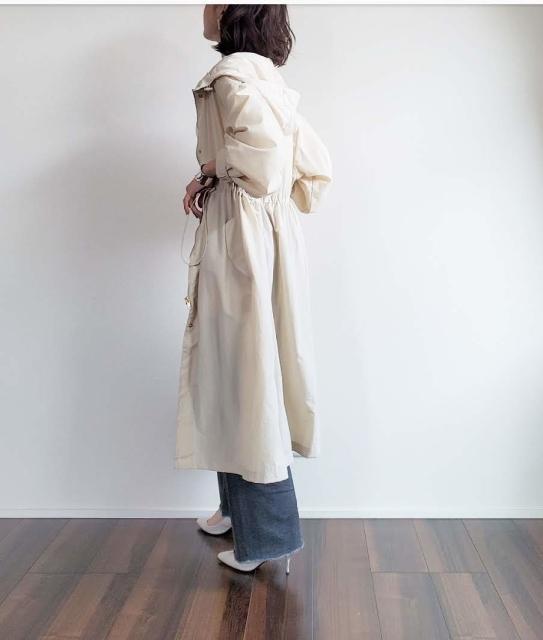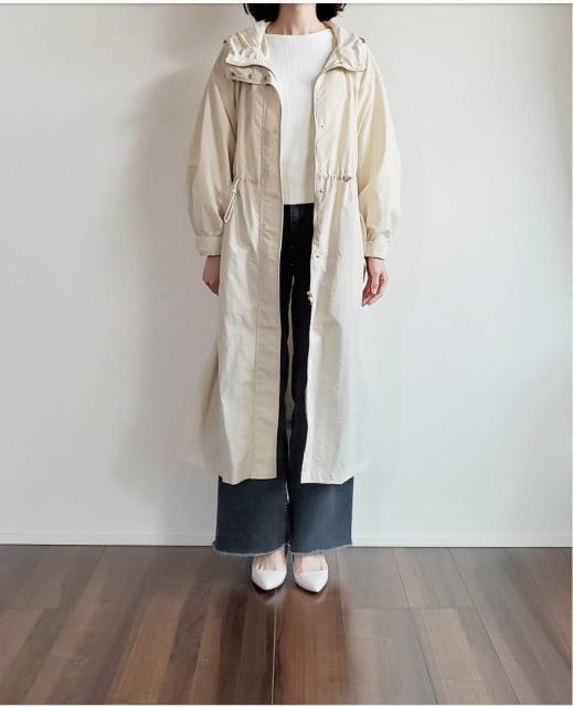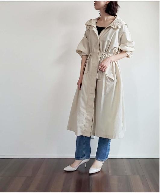 GUの「ウエストドローストリングコート」 は、春でも長めのロングアウターが着たい方や、ちょっと個性を出したい方にとってもおすすめの羽織りアイテム♪