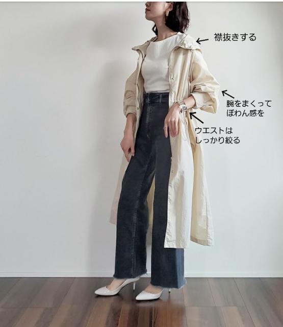 でも、少し手を加えるだけでグッとこなれ感がアップ!「ウエストドローストリングコート」だけじゃなく、似たシルエットのアウターにも使えるひと技なので、ぜひ以下をチェックしてみてくださいね♡