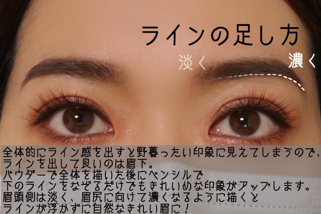 眉をきれいめな印象に見せるには、ふんわりとした眉より【ライン感】をプラスしてキリッと感のある眉にすることで大人っぽく美人度の高い眉になれます。