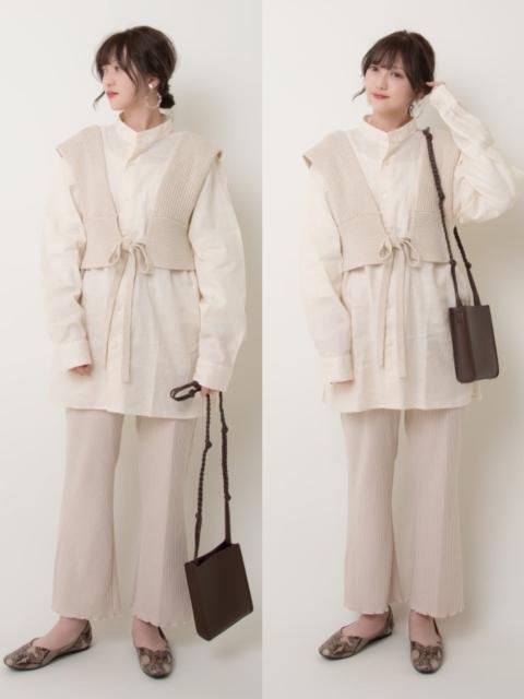 すとんとしたボトムと合わせているので、ダボっとした野暮ったさを感じさせません。