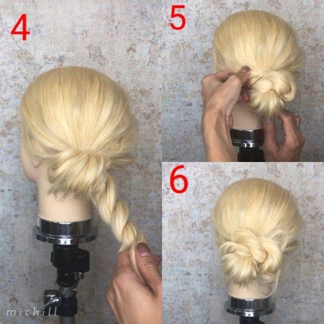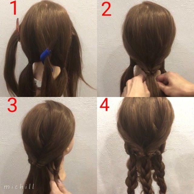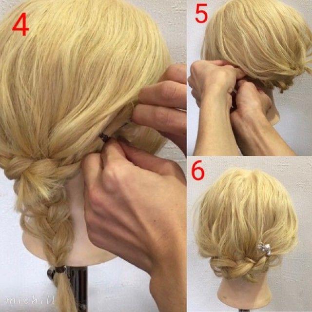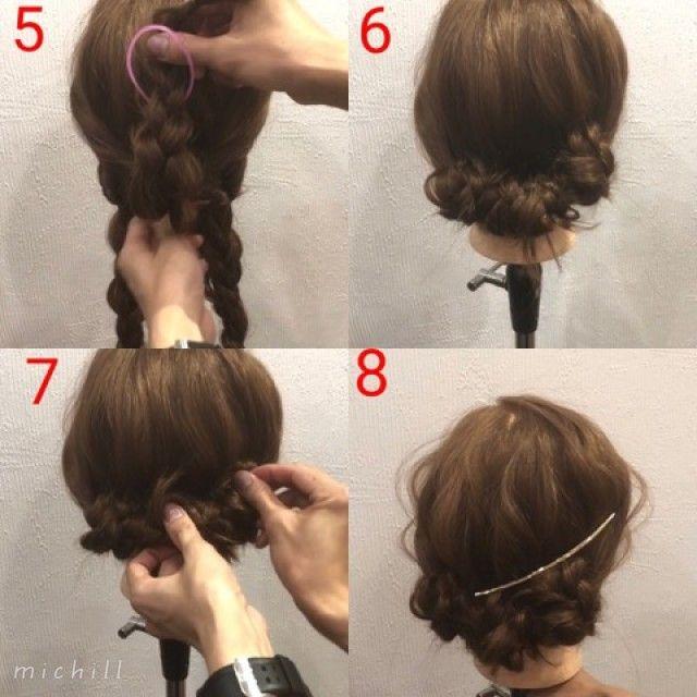 三つ編みがゆるいとしっかりとピン留めができないので、三つ編みはしっかりと作ってください。