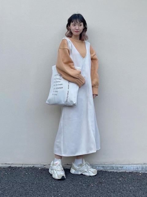 春色アイテムは、ジャンスカやキャミソールワンピースのインナーとして着用すると、手軽に即おしゃれな春コーデが叶うのでおすすめ。