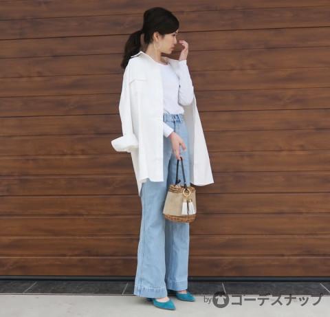 カジュアルな着こなしですが、きれい色パンプスできちんと感もあり、おしゃれを格上げ。清潔感漂う大人スタイルは夏まで着まわせそうですね♡