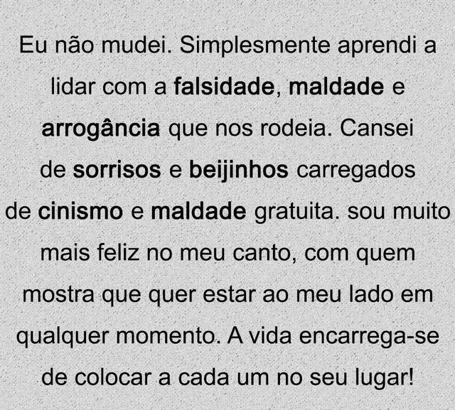 EU NÃO MUDEI SIMPLESMENTE APRENDI A LIDAR COM A MALDADE, MENSAGENS