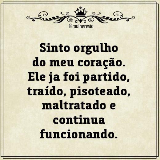 SINTO ORGULHO DO MEU CORAÇÃO. ELE JÁ FOI PARTIDO E MALTRATADO MAS CONTINUA FUNCIONANDO!