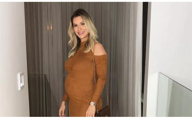 "Já estou de pijama com Gabriel, mas queria mostrar o look que usei hoje à tarde", escreveu ela na legenda da publicação, usando as hashtags "amando meu barrigão" e "look do dia". A loira anunciou que estava grávida de 10 semanas do segundo filho no dia 20 de janeiro.