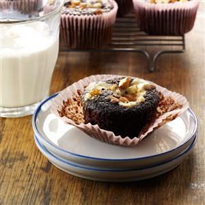 Fill paper-lined muffin cups half full with chocolate batter. Drop a heaping tablespoonful of cheese mixture in center of batter of each cupcake. Sprinkle with sugar and chopped almonds if desired.
