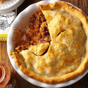 Line a 9-in. deep-dish pie plate with bottom pastry; fill with bean mixture. Top with remaining pastry; seal and flute edges. Cut slits in top crust.