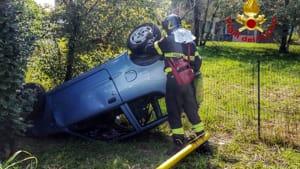 Incidente martedì pomeriggio sulla provinciale 179. Alle 14.20, per cause ancora in corso d'accertamento, una Fiat Seicento che percorreva la "Villa Fornaci - Trezzo" è uscita di strada e si è ribaltata in un campo accanto alla carreggiata fermandosi sulla rete che delimita il giardino di una villetta privata dopo aver abbattuto un paletto della segnaletica stradale.