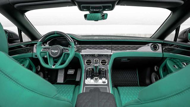 Reposant sur une Bentley Continental GT Cabriolet, cette version revisitée par Mansory reçoit un traitement de carrosserie noir mat avec de nombreux inserts en fibre de carbone. À contrario, si la teinte extérieure est sombre, le vert éclatant de l'habitacle vient immaculer l'ensemble des composants de la voiture, à commencer par les sièges en cuir ou encore une bonne partie de la planche de bord. Nous retrouvons d'ailleurs quelques éléments de cette couleur sur la carrosserie et au niveau des étriers de freins.