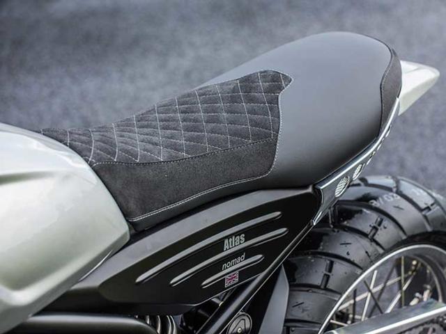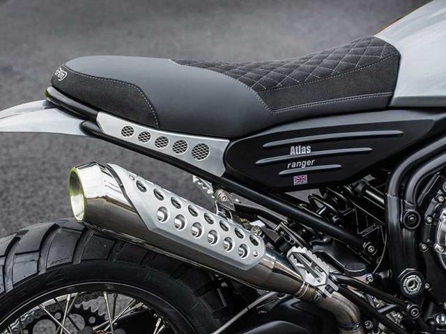 The up-spec Ranger meanwhile is the wilder child, running with a 19-inch wheel at the front and a 17-incher at the back. This more expensive Atlas model also gets a skid plate, higher-mounted fender, aluminum rear panel, a cowl with windscreen, and braced handlebar. As you’d expect, there’s also a longer-travel adjustable Roadholder suspension (7.9 inches [200mm] of travel front and rear), radiator protection, and a flyscreen as well, but the Ranger has the same chassis, engine, tank, seat, switchgear, and brake kit as the Nomad (though the wheelbase is an inch longer).