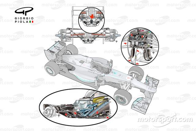 Y, si bien eso ayuda a aquellos coches que compiten con un rake más alto, en realidad es aún más beneficioso para aquellos que llevan un ángulo de inclinación más bajo, como Mercedes.