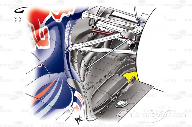 A medida que las reglas cambiaron continuamente durante ese período, también lo hizo el enfoque de los equipos, pero la constante que quedó fue el empeño de Red Bull en sellar el borde del fondo plano y el difusor, donde fuera posible, de la turbulencia creada por los neumáticos.