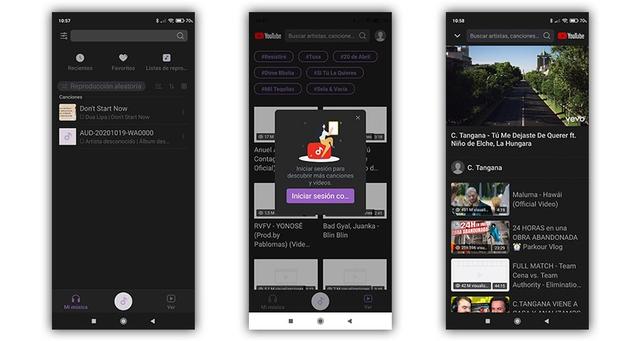 Al volver a la app, el diseño habrá cambiado totalmente y entonces sí tendremos las opciones disponibles. Os recomendamos iniciar sesión con vuestra cuenta de Google para que no haya problemas, lo que nos parecerá al tocar en la parte inferior sobre el botón Ver. Ahora ya podemos usar el buscador para escuchar la música que más nos gusta o dejarnos guiar por las recomendaciones.