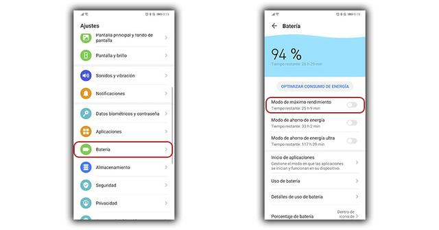 Para conseguir el rendimiento deseado en nuestro móvil Huawei, tenemos que realizar un proceso realmente sencillo. Los desarrolladores de EMUI 10 nos han puesto en bandeja una opción con la que nos resultara muy fácil y cómodo mejorar los resultados de nuestro móvil Huawei. Lo único que tenemos que hacer es entrar en Ajustes > Batería y dentro, encontraremos la opción llamada «Modo de máximo rendimiento».