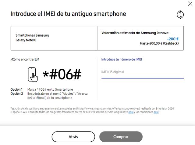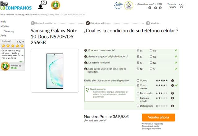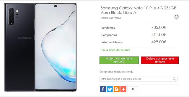 En esta web de compra el Galaxy Note 10 es valorado en 368.58 euros, la mejor oferta vista hasta el momento que podría dejar la compra del Note 20 en 590 euros