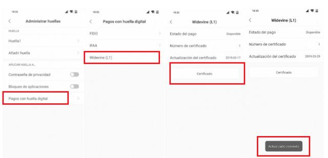 Una vez tenemos los pasos anteriores, tendremos que acudir a Ajustes/Pantalla de Bloqueo y contraseña. Una vez dentro pulsamos sobre Widevine L1 y pulsamos sobre “Certificar”. Una vez hecho, el terminal contará con el certificado necesario para poder reproducir contenidos en alta resolución en todo tipo de servicios de vídeo en streaming. No obstante, si persisten los problemas en apps como Netflix, se recomienda borrar la caché de la misma o desinstalarla. Después tendremos que reiniciar el dispositivo, volver a instalar la app y probar de nuevo.