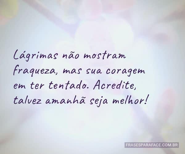 LÁGRIMAS NÃO MOSTRAM FRAQUEZA,MAS SUA CORAGEM EM TER TENTADO.ACREDITE,TALVEZ AMANHÃ SEJA MELHOR! MENSAGENS