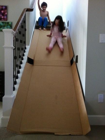 7. Turn an old box into an indoor slide.