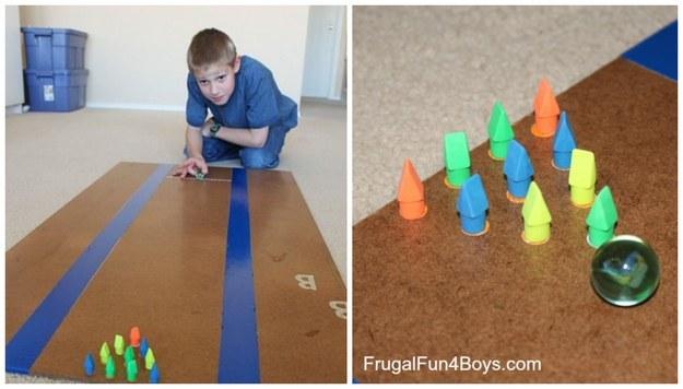 14.Pencil erasers and a marble make a surprisingly addictive at-home bowling game.