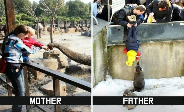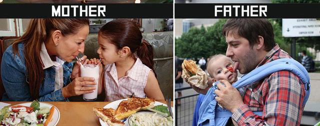 There is typically a big difference between moms and dads, and I’m not talking about the obvious. I’m talking about how they do things in regards to taking care of the kids. And truthfully this is not a man-bashing post. Moms and dads are just different. While I am usually the one that knows how to make the baby stop crying and what our daughter’s picky eating habits are, he is definitely the fun one and I often feel like a wet blanket and broken record; constantly reminding him that it’s time to let our 15 month old settle down because it’s almost bedtime. So, here are 12 pictures of moms being moms and dads being dads that will definitely make you laugh.