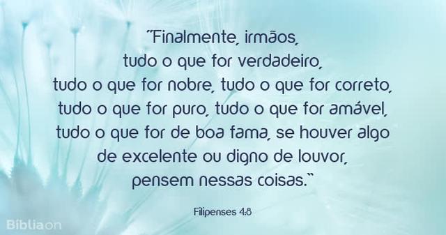 Muitas vezes pensamos tanto nas coisas ruins da vida que esquecemos das coisas boas. Pensamentos negativos tiram a felicidade. Por isso, quando você está em baixo, pense em coisas boas! Por cada pensamento negativo pense em duas coisas positivas e agradeça a Deus por elas.