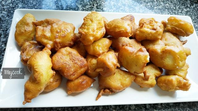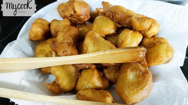 - Sumergir los trozos de pavo en la mezcla y freír en aceite a fuego medio-alto hasta que tomen un buen color dorado.