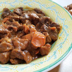Estofado de carne de cerdo, no todos los días va a ser ensalada y gazpacho, también nos apetece un poco de carne guisada. Igual tenéis alguna comida en familia y no queréis complicaros la vida demasiado, pues esta receta os sacará del apuro. Con poco dinero tendréis una receta casera de las que os hacían vuestras madres los domingos.