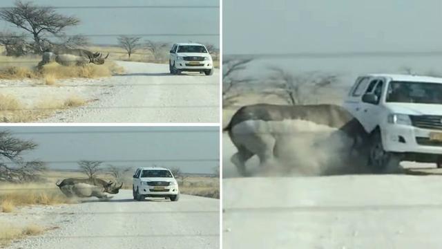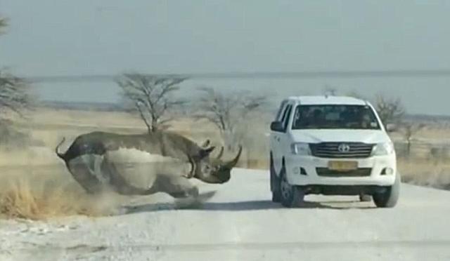 Rhinos are known for having a sweet side, but they have also been known to get ornery from time to time as well. We are not sure what triggered this rhino’s attack and while it had to be a frightening moment for everyone in the vehicle to experience, it will also give them one heck of a story to tell once they get back home.