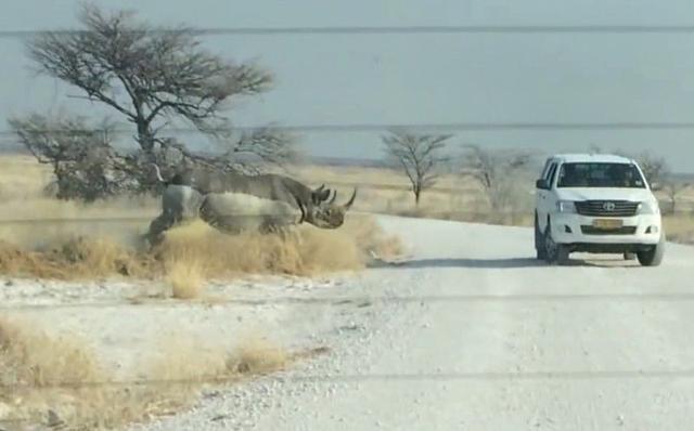 This story took place at a national park in Namibia and these tourists who happened to be passing through an area full of rhinos never could have expected what would happen next. The pictures you are about to see are absolutely incredible.