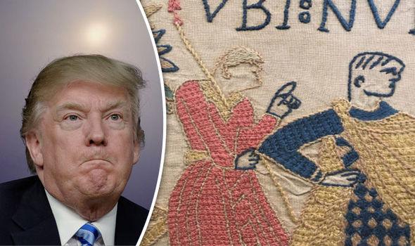 The person on the tapestry is wearing a red grown with what looks like swept over blonde hair and is even complete with “little hands” – something President Trump has been mocked for in the past.Twitter user Sven van der Hart posted on the microblogging site: “We found Trump on the Bayeux Tapestry of the battle at Hastings.