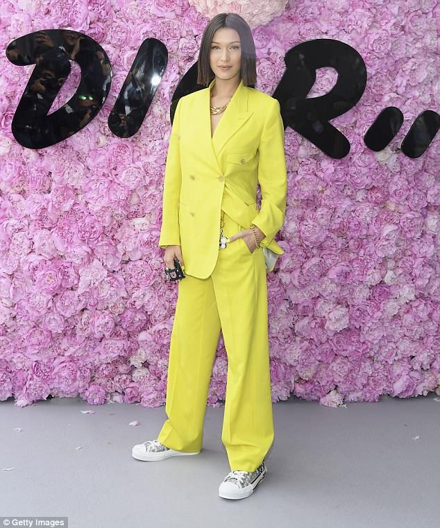 Bella Hadid Flashes in Lemon Pantsuit Show in Paris See