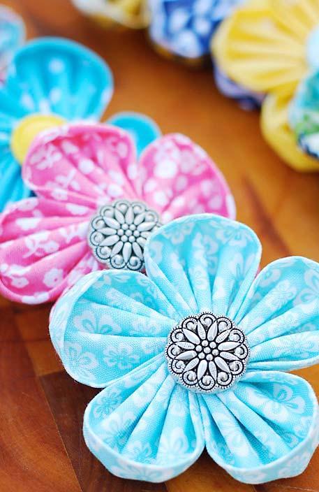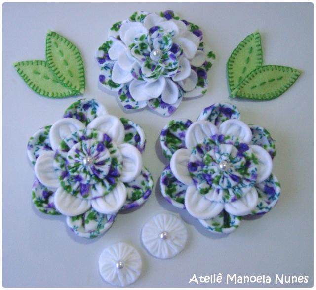 As flores de tecido são tudo de bom, são lindas e enfeitam muito bem qualquer tipo de peça.