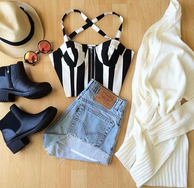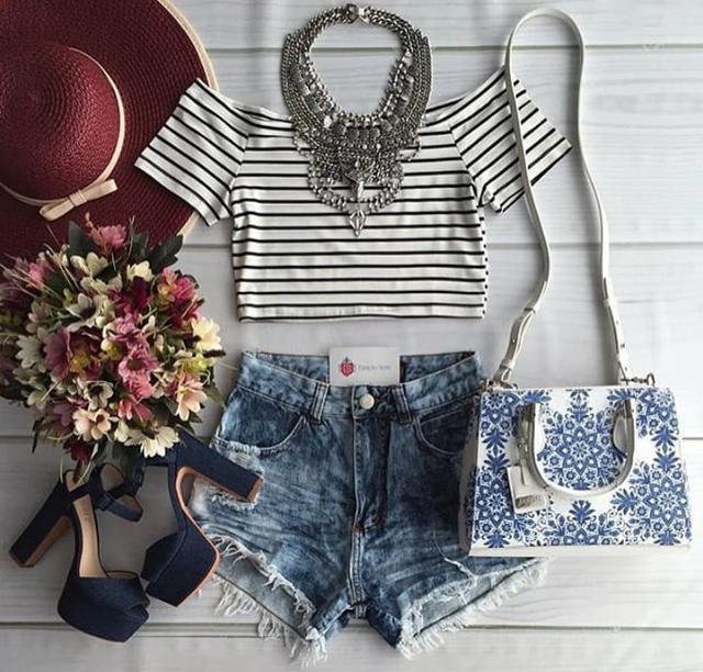Os looks de Shorts jeans são muito usados, conbinam com todos os estilos, para as adeptas ao shorts jeans, eles combinam com rasteirinha, tênis, plataforma e para aquelas que querem um look mais moderno ou refinado , basta usar com blaser e scarpins.