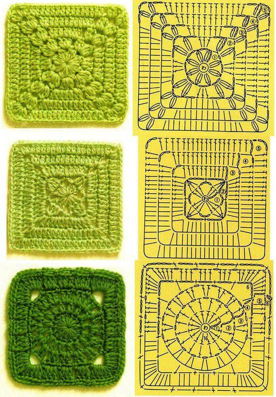 Padrões de squares de crochê: