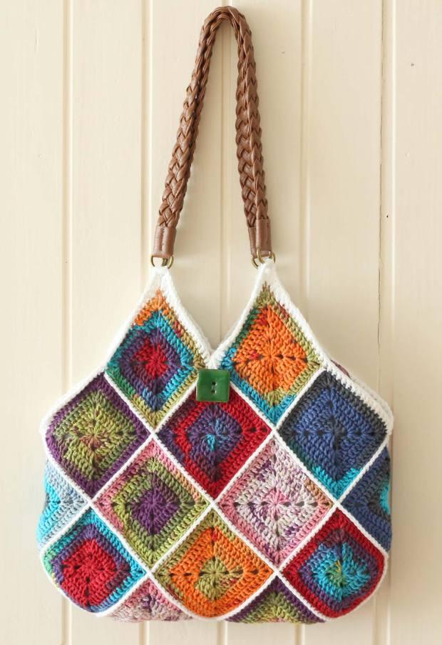 Bolsas com squares de crochê: