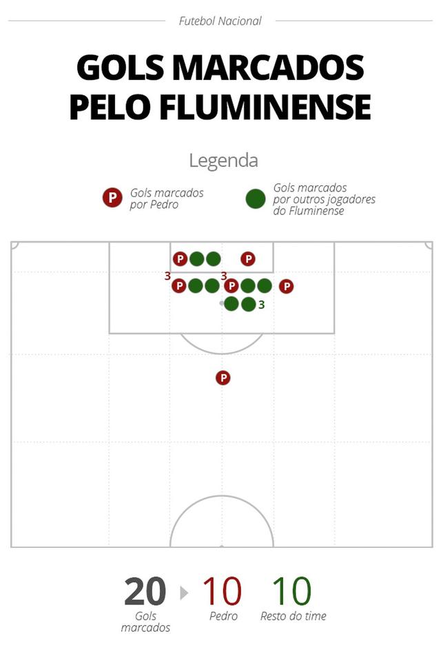 Até aqui no Campeonato Brasileiro, Pedro já finalizou 51 vezes em 17 jogos disputados dentro da competição, tendo uma média de três chutes a gol por partida. Fora isso, o atacante balançou a rede em 10 oportunidades, sendo o artilheiro do torneio, e autor de metade dos gols do Fluminense no Brasileirão, que marcou 20.