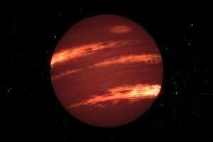 They found that the core rotates about once every 1.76 hours, and the atmosphere once every 1.74 hours. This means that the winds hurtling eastward across the brown dwarf blow at about 650 metres per second, much faster than those on any planet in our solar system.