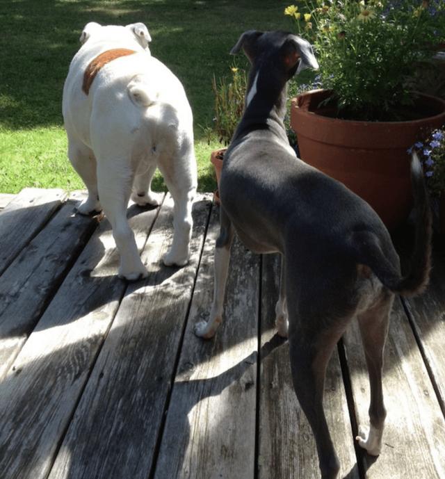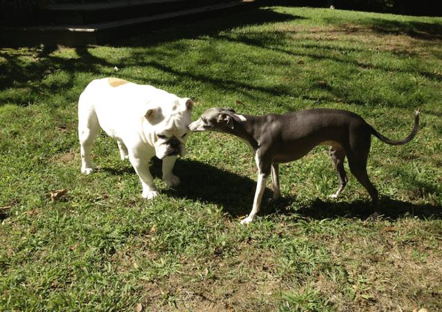 A family adopted an Italian Greyhound named Lou from the shelter. Lou was very timid and scared. He was terrified of people and dogs.