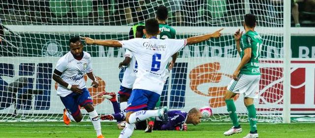Criar chances para empatar não estava fácil para os anfitriões, mas, a partir dos 20’, isso mudou. Gustavo Scarpa cobrou falta e o zagueiro Luan cabeceou para fora, passando perto da trave. Com 31’, Guerra bateu escanteio, Juninho escorou e Thiago Santos concluiu de cabeça no travessão do arqueiro Helton Leite. Na sequência, a bola saiu pela linha de fundo.