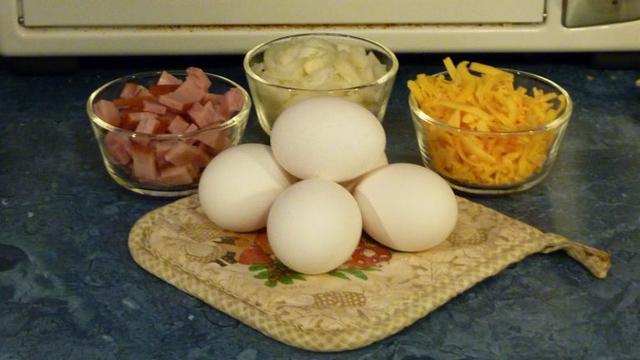 If you liked that omelet in a bag, you’ll want to try this next recipe. First, gather some eggs, diced ham or any other meat (skip this ingredient if you’re vegetarian), onions, and cheese. Start by separating your egg whites and yolks and set the yolks aside…