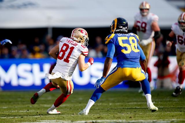 Yeah, I’m wrong, and the majority of us are. Taylor is far more important than the 42nd best player on this team. It says a lot about him that on third downs, or in the red zone, Jimmy Garoppolo’s eyes immediately go to Taylor. When Richard Sherman said Taylor might catch 80 or 90 passes, it may have seemed like hyperbole, but there’s a good shot he eclipses that number.