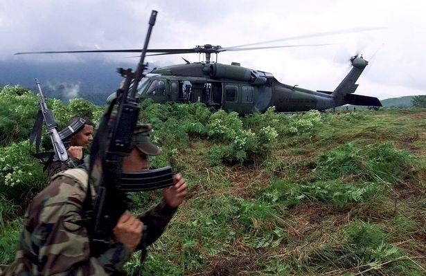 A Colombian soldier patrols near a forest (Image: Reuters)