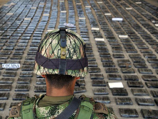 A soldier guards a shipment of 3.9 tons of cocaine seized in a large clandestine laboratory (Image: AFP)