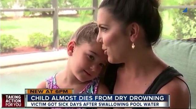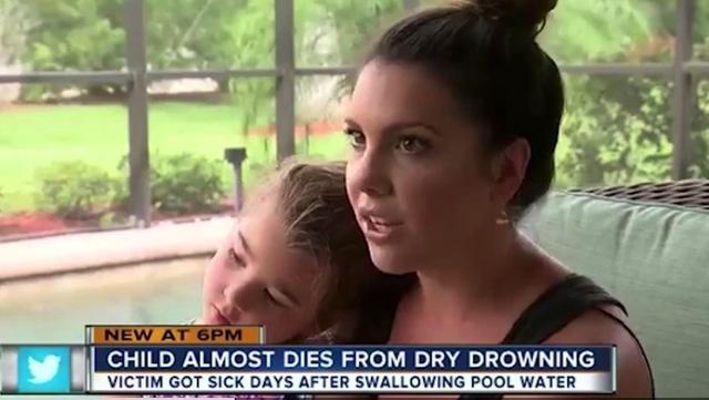 Elianna Grace, four, from Sarasota, Florida was diagnosed with aspiration pneumonia, also known as "dry drowning" a condition that occurs when someone inhales water through the mouth or nose and it gets into the lungs.