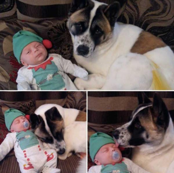 A cachorrinha rapidamente simpatizou com o bebê, e como ela sempre cuidou de sua mãe, agora também cuida dele, certamente serão amigos inseparáveis.